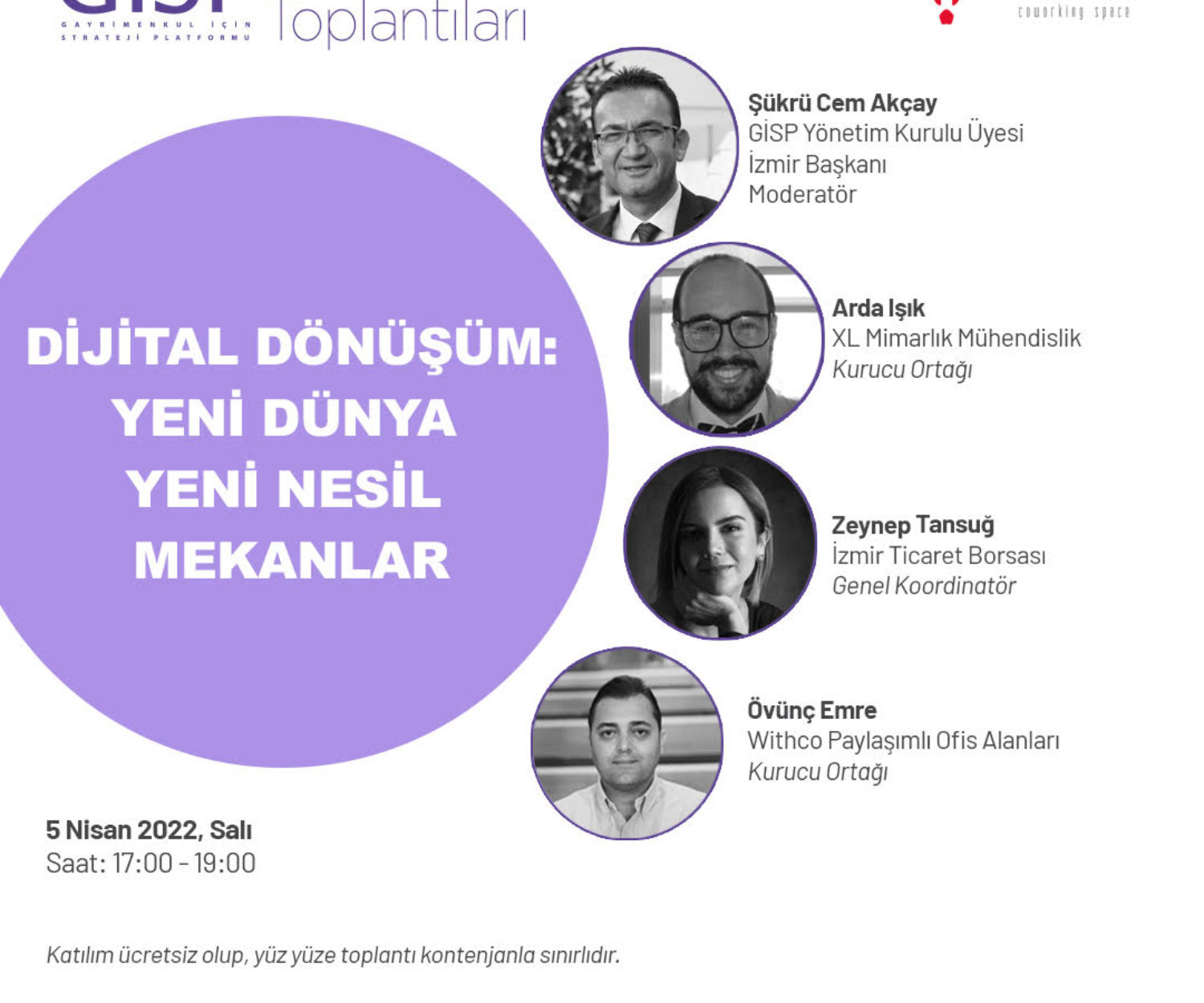 Yuvarlak Masa Toplantıları 21 Nis 2022 İzmir Şubemiz, ”Dijital Dönüşüm: Yeni Dünya Yeni Nesil Mekanlar” konulu Yuvarlak Masa Toplantısını 5 Nisan 2022 de gerçekleştirdi. Gisp